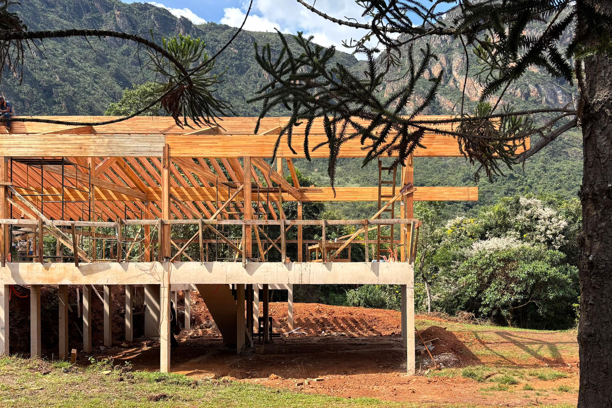We designed this mountain retreat near Serra do Rola-Moça State Park, on the edge of a small village outside Belo Horizonte, Brazil, as a place for living, working, and recreation immersed in nature. The project is based on a strict modular system that optimizes construction using sustainably sourced timber.